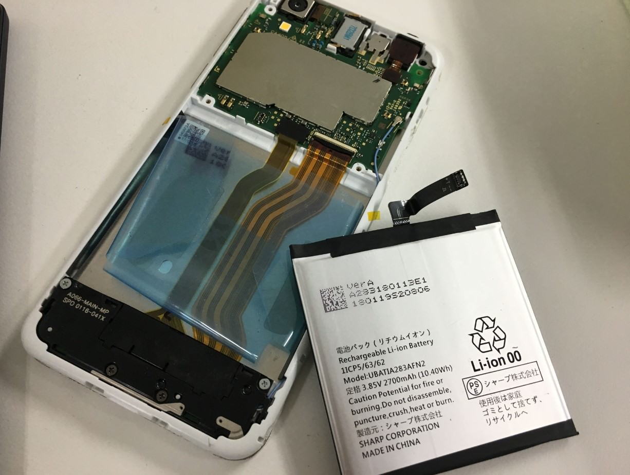 AQUOS sense liteがロゴから進まない!ブートループがバッテリー交換で改善!