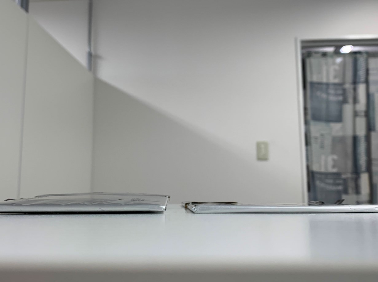 ちなみに、膨張したバッテリーを通常のバッテリーと比べると…