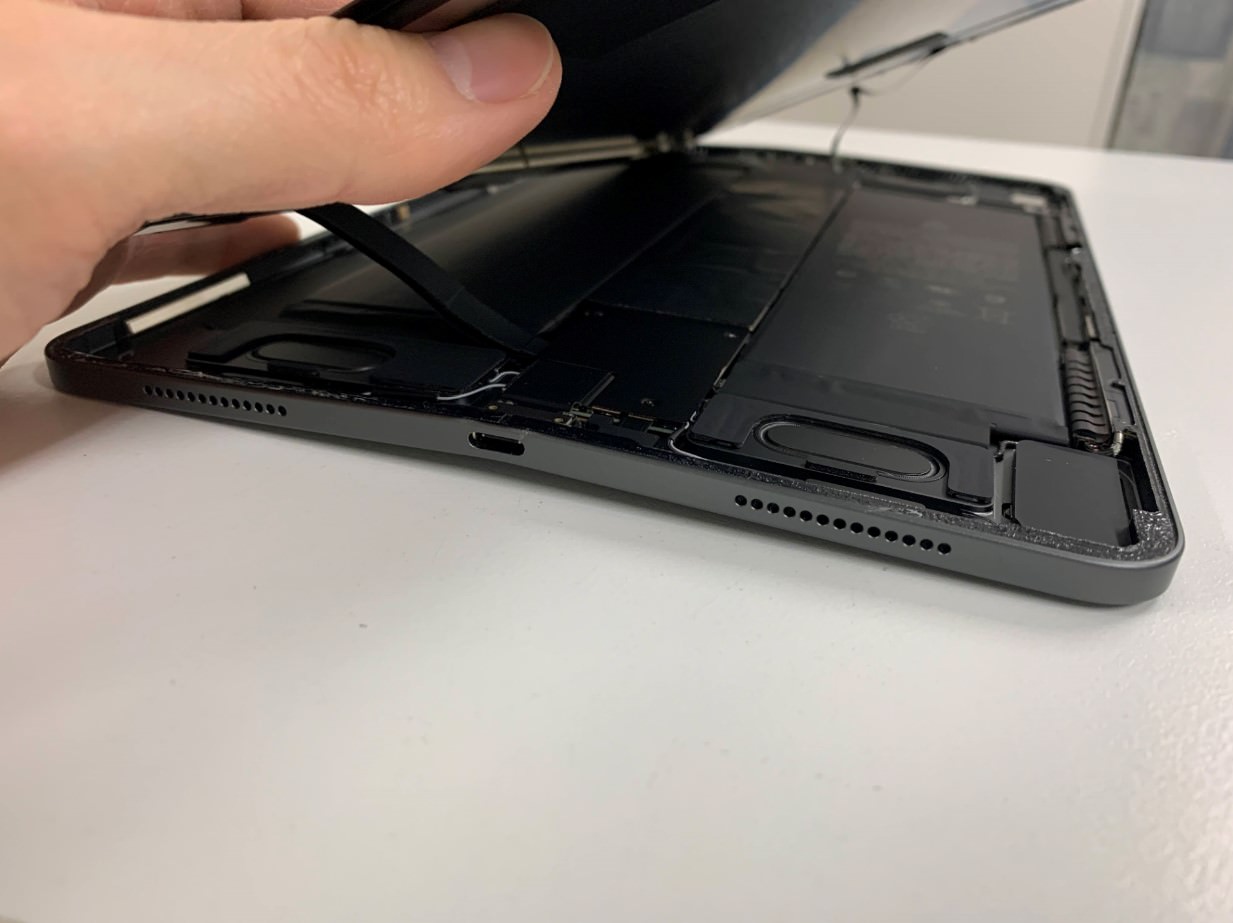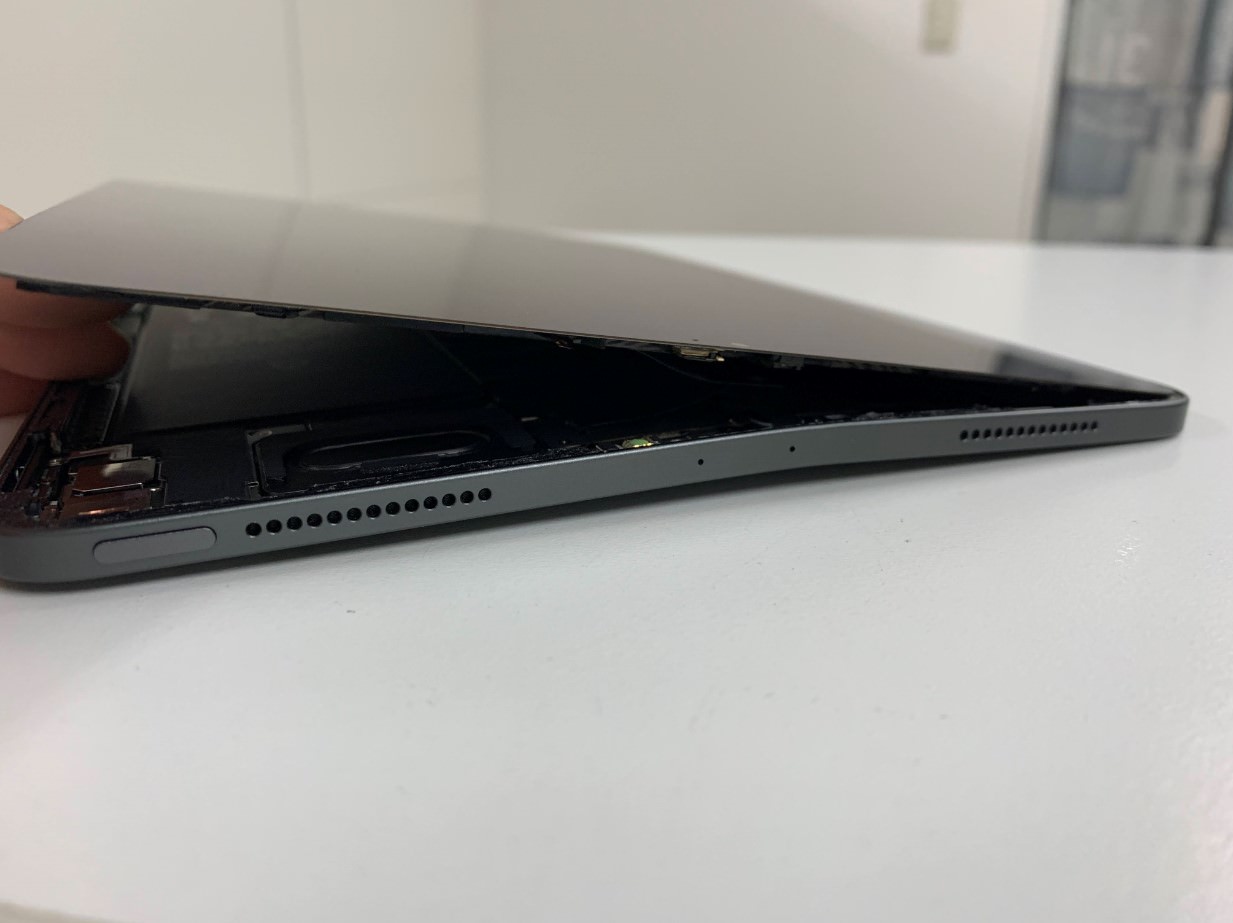 変形したiPadから割らずに画面を剥がすのは至難の業です。