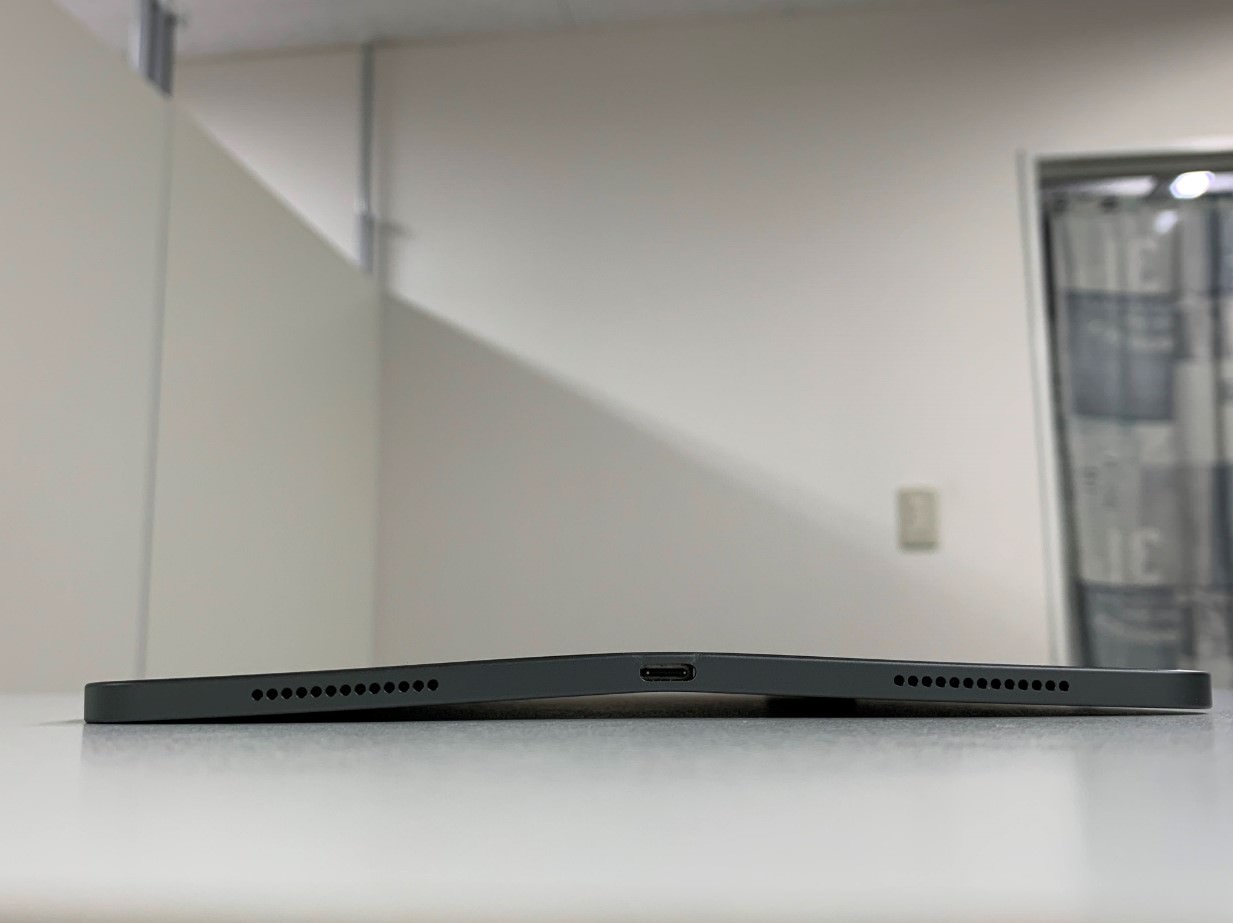 今回お持ち頂いたiPadPro11 第2世代は変形し過ぎて、机に置いた際に向こう側が見えるほどでした。
