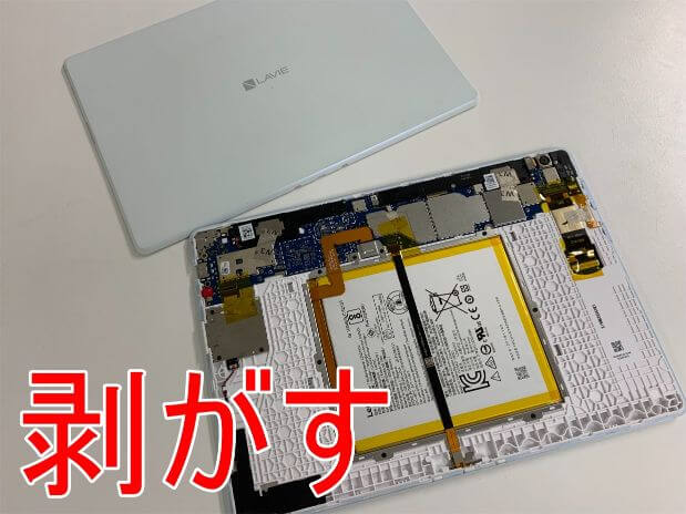 機種にもよりますが、LAVIE Tabはほ背面パネルを剥がして分解することが多いです。