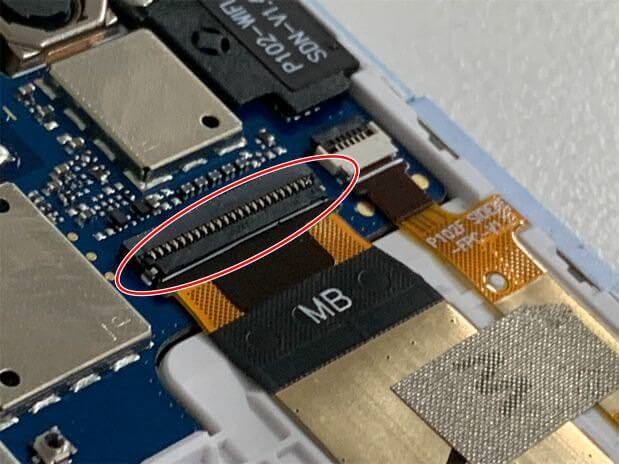 LAVIE Tab(PC-TE410JAW)は基板と充電口がはんだ付けされているのですが、はんだが剥がれかかっているようです。
