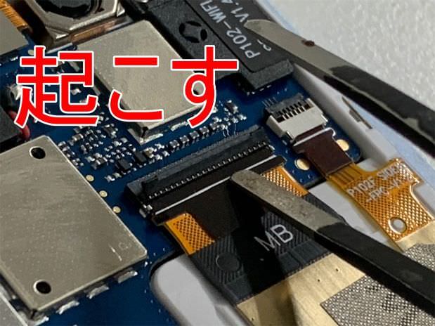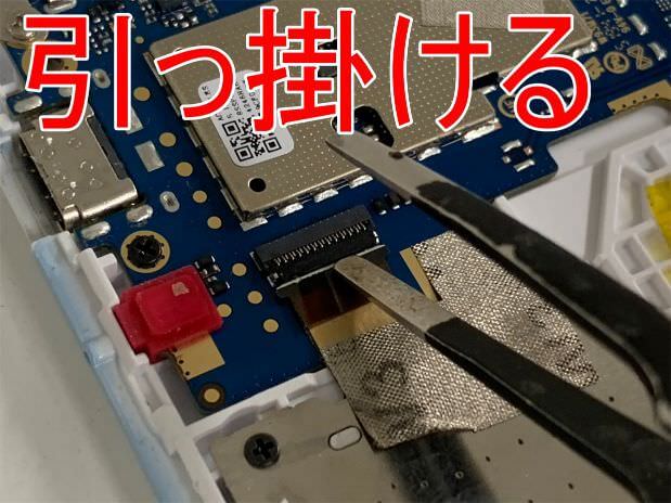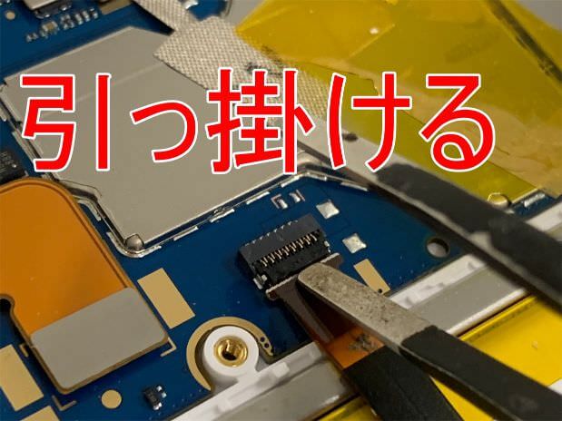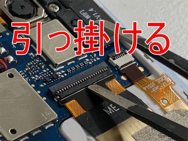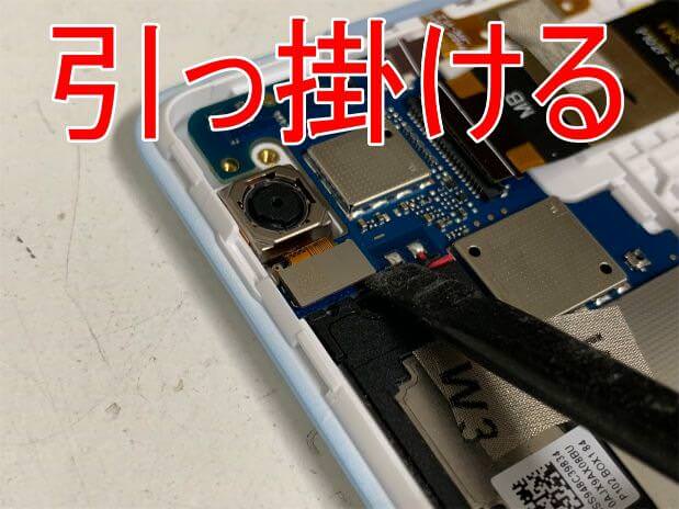 カメラを外す場合は、コネクタ部分にヘラを引っ掛けて…