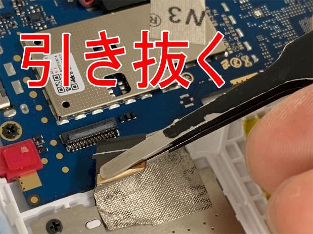 後はピンセットでケーブルを引き抜きます。