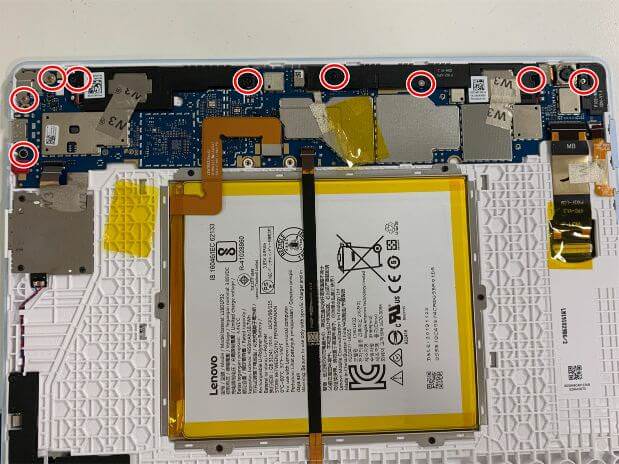 LAVIE Tab(PC-TE410JAW)の基板は9本のネジで本体フレームに固定されています。
