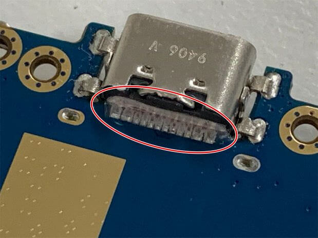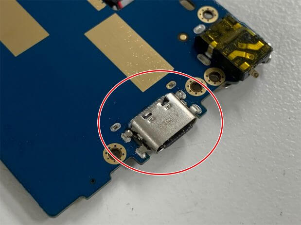 基板を裏返すと充電口パーツが確認できます。