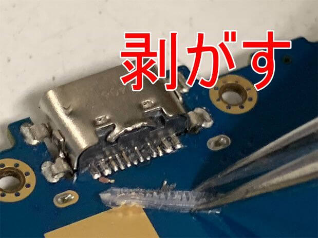 これで充電口と基板の接点が剥き出しになりました。