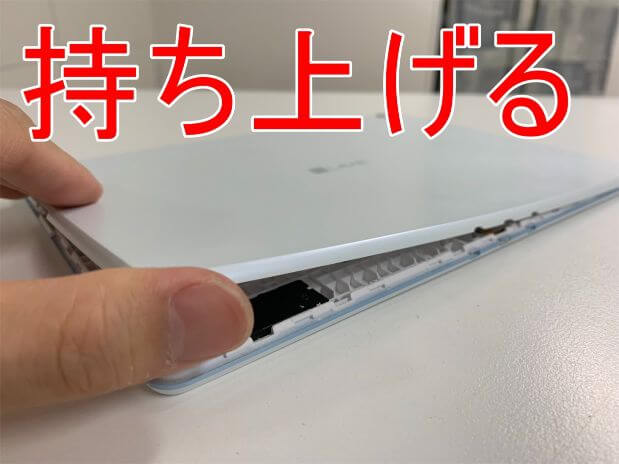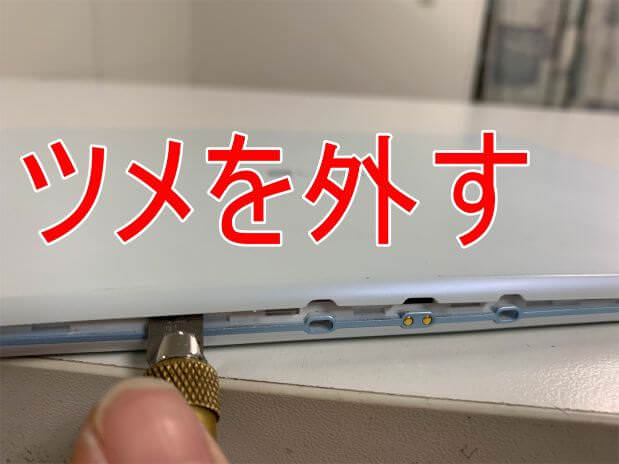 ツメが付いたまま強引に持ち上げると背面パネルが割れてしまうので注意が必要です。