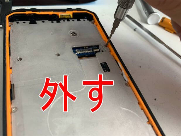 これで画面パーツを固定しているコネクタが見えるようになりました。