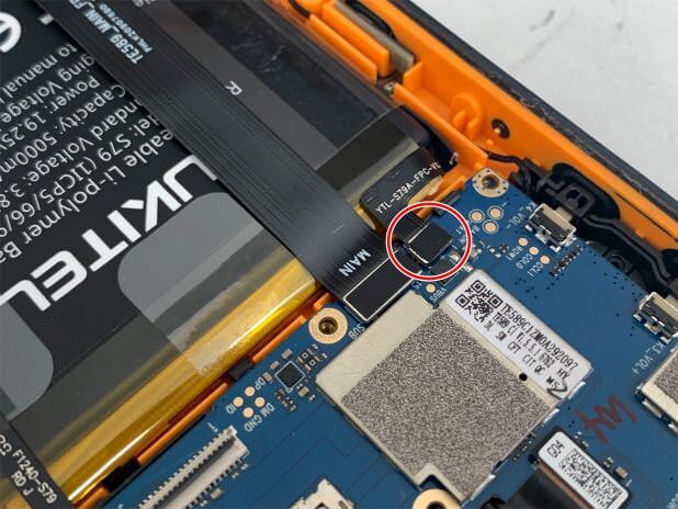 OUKITEL WP8 Proの充電口パーツはネジで本体フレームに固定されています。