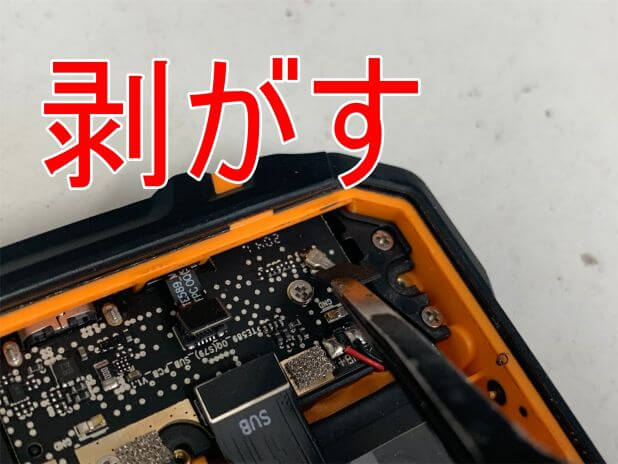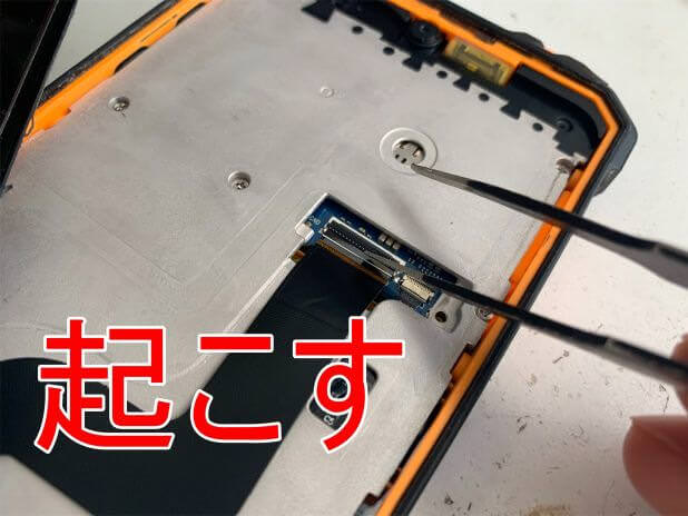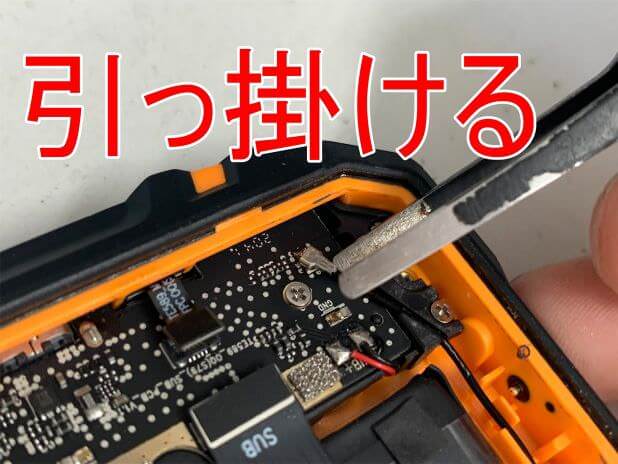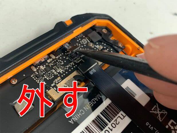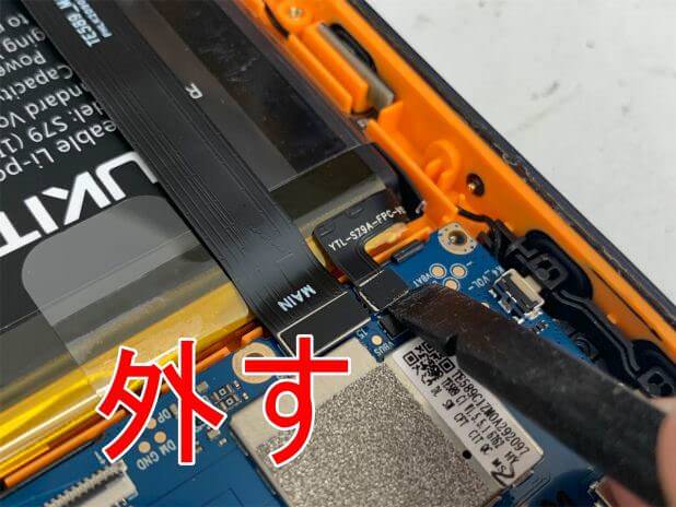 バッテリーコネクタを抜いた際と同じように、プラスチック製のヘラを引っ掛けて上に持ち上げます。