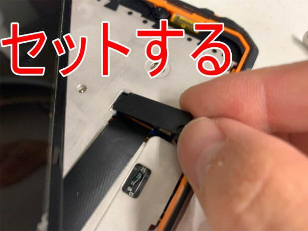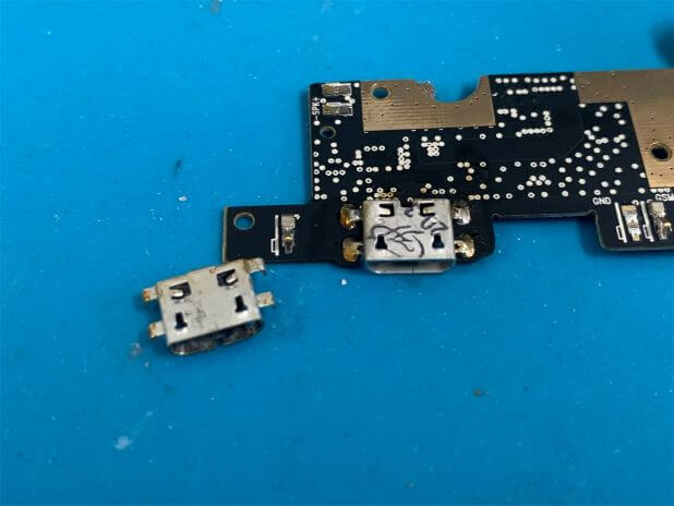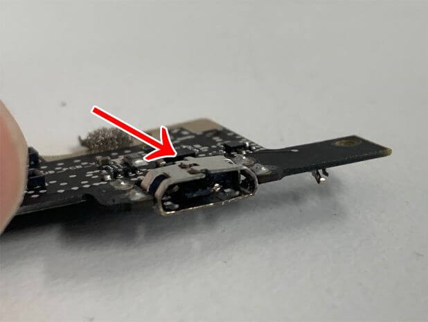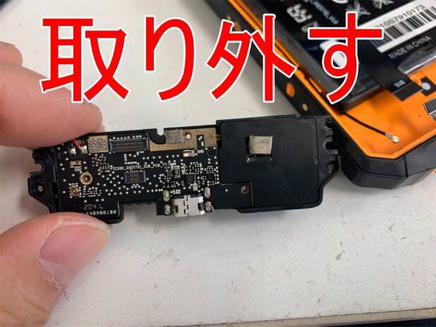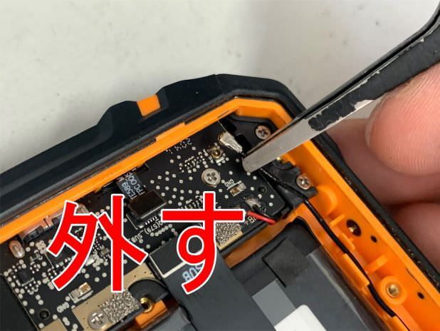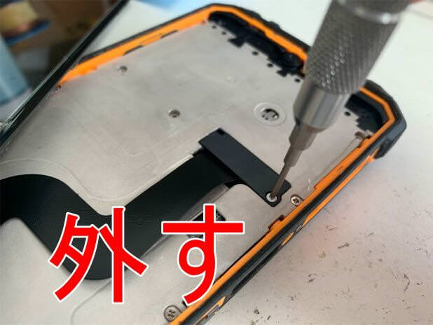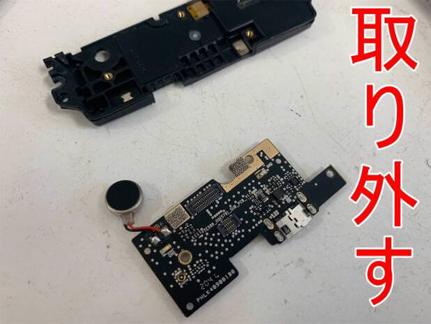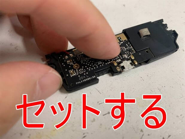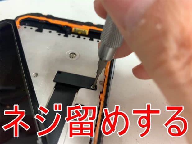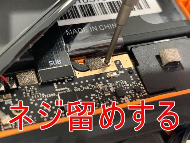 まずは画面パーツを外して充電口基板を固定していたネジを留めます。