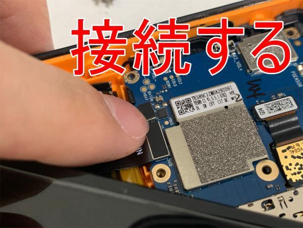 ネジで留めたら後は画面を接着するだけですが、その前に起動確認を行っておきます。