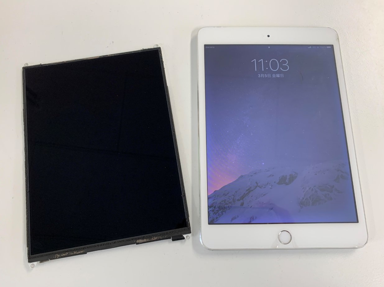 スマホスピタル町田なら即日で液晶画面を新品に交換して、iPad mini3でもまだまだこの先お使い頂けるように改善させられます!