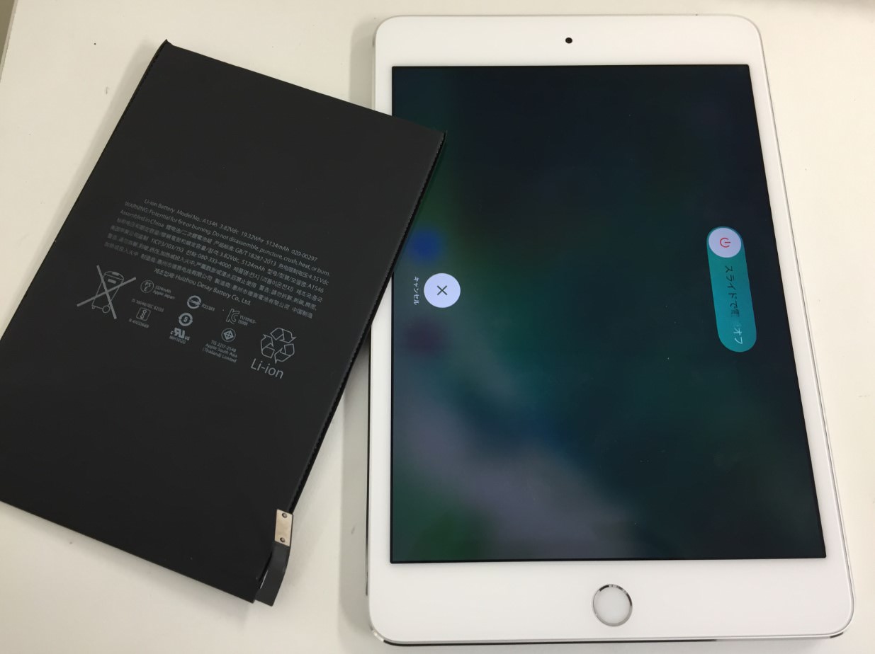 もう何千台と同じような状態のiPadの修理ご依頼を頂いてきましたが、全てバッテリーを交換することで問題なくお使い頂けるようになっています。