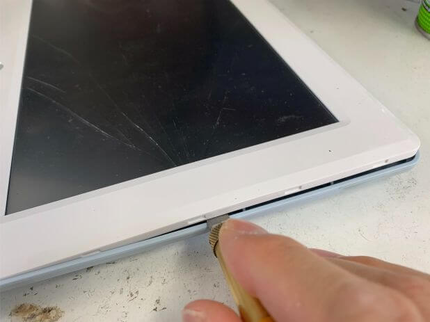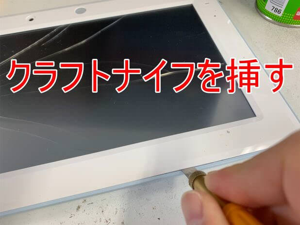 画面パーツと背面パネルの隙間に挿しこみます。