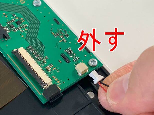 分解が出来たらまずはバッテリーコネクタを外します。