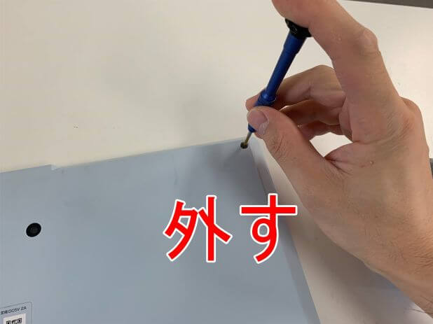 ドライバーを使って全てのネジを外します。