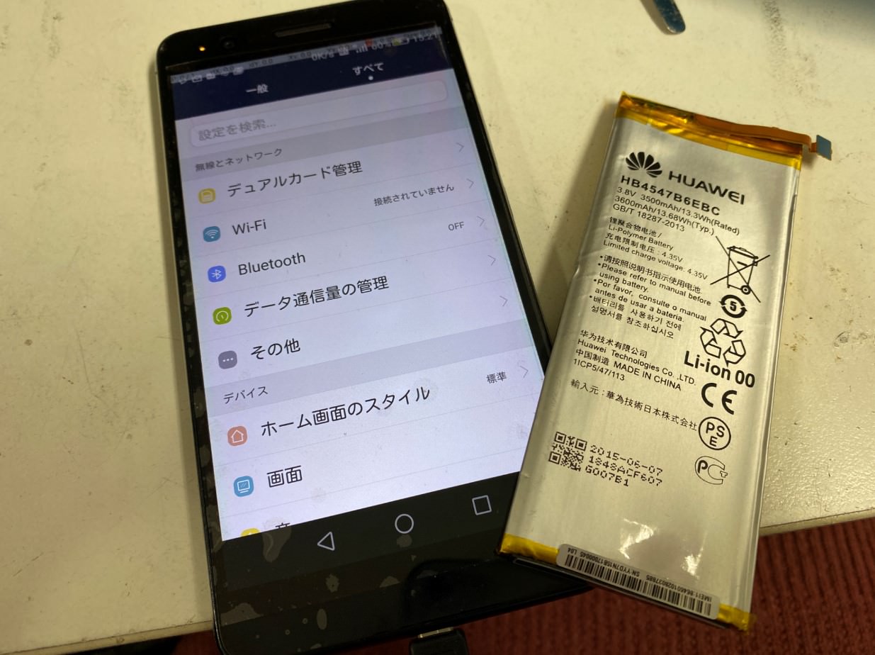 HUAWEI製スマホのhonor6Plusですが、度々電池パックの膨張や電源が入らなくなったというご相談を頂きます。