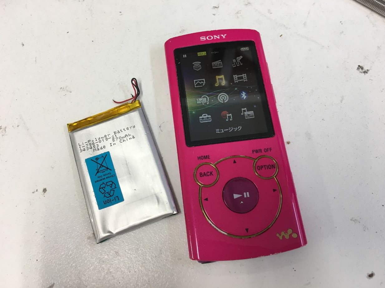 今回のようにバッテリー交換することで、全く反応のなくなってしまったウォークマンが復旧する例は多いです。