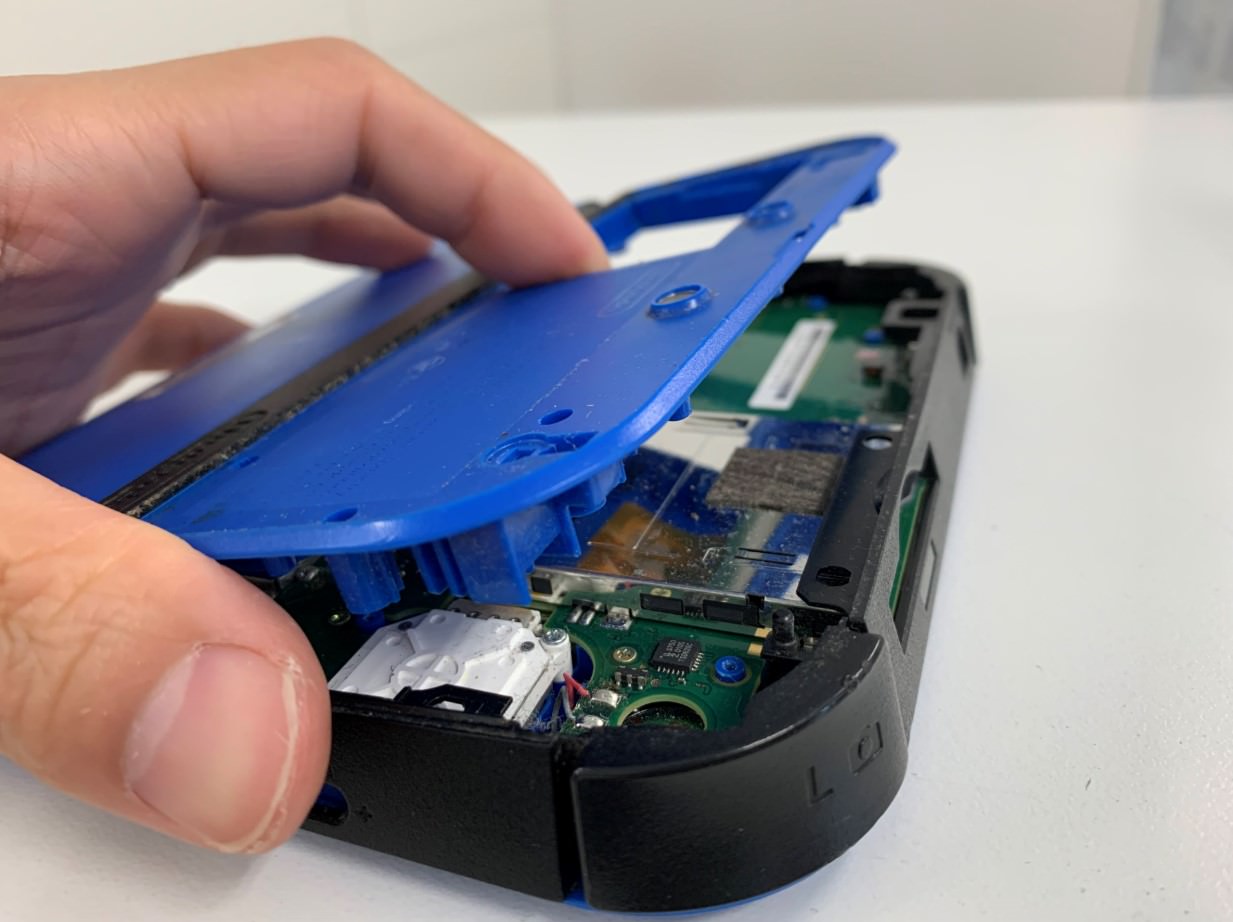 背面パネルのネジを外してバッテリーを取り出し、写真の通り背面パネルを本体から取り出します。