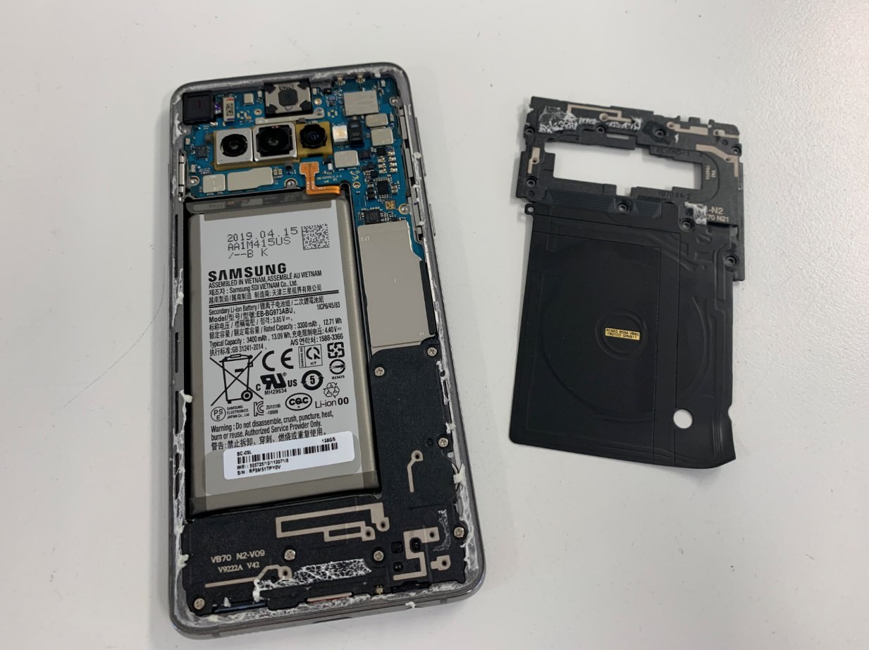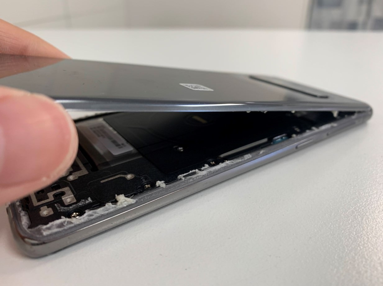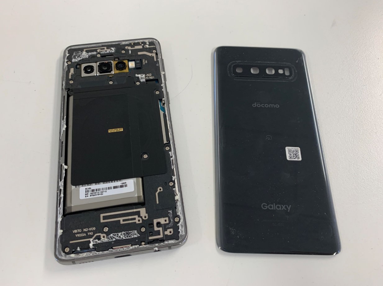 Galaxy S10の背面ガラスも歴代の機種同様、強引に剥がすと割れてしまいます。