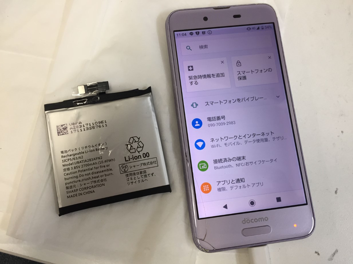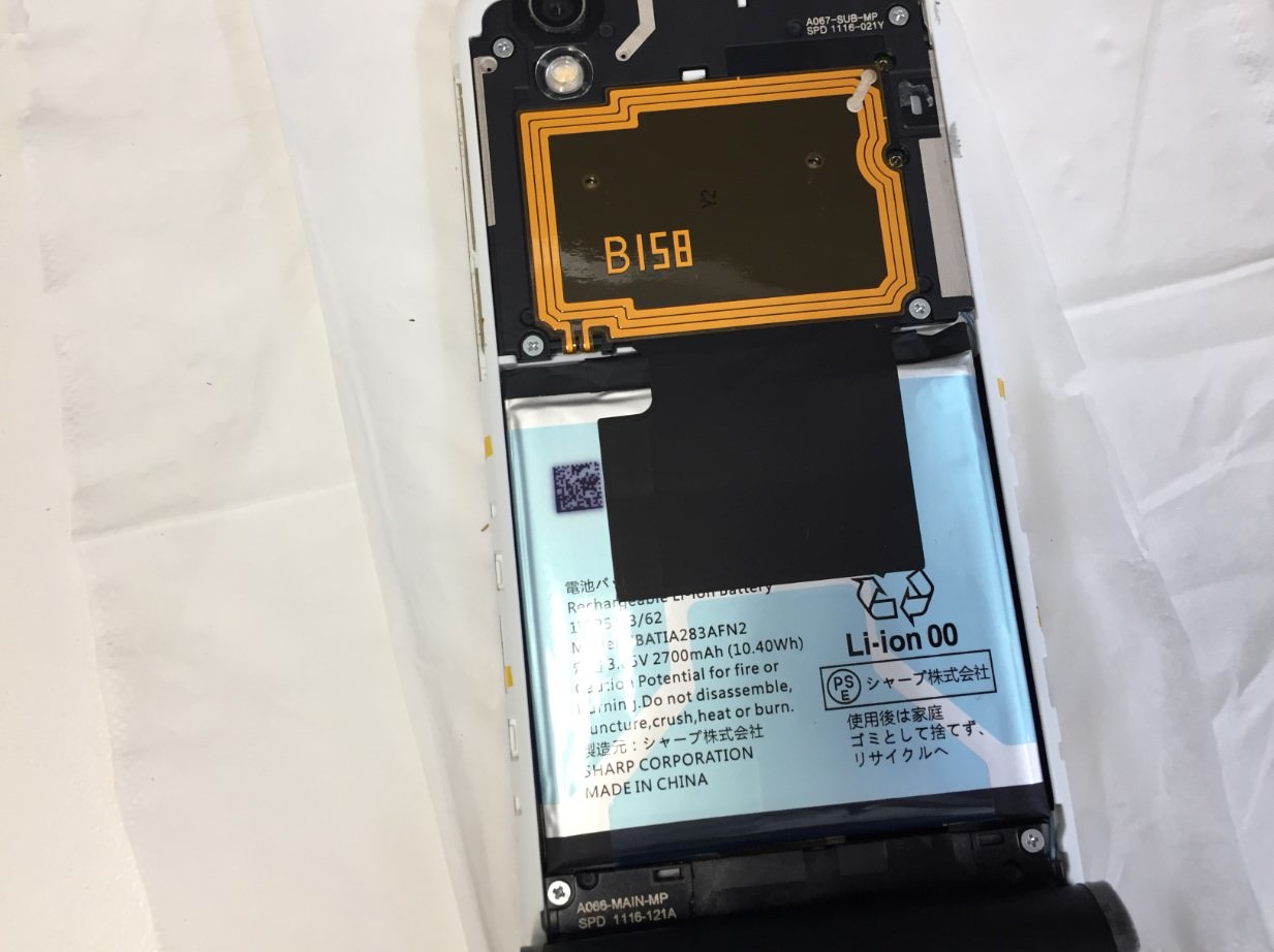 AQUOS sense(SH-01K)の電池の減りがとても早いということで、バッテリー交換修理依頼を頂きました。