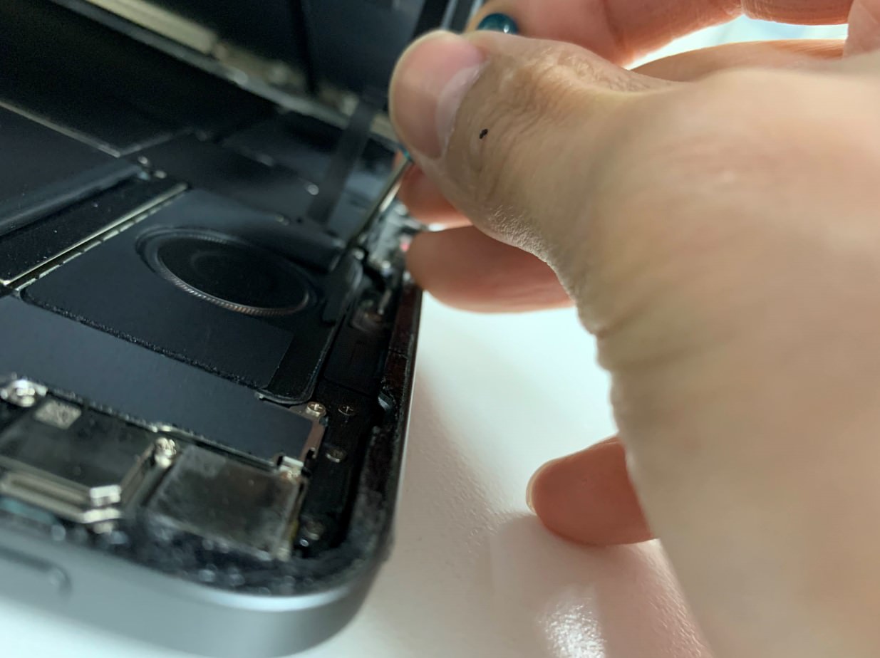 本体上部のFaceIDセンサーケーブルを外す作業を行います。
