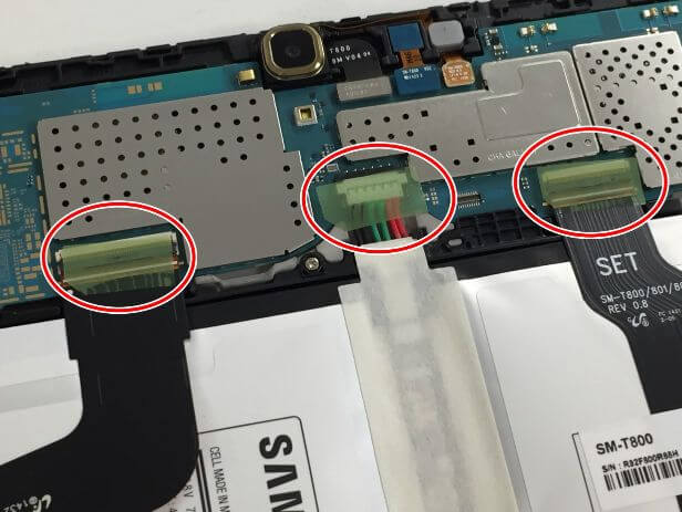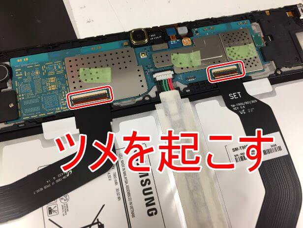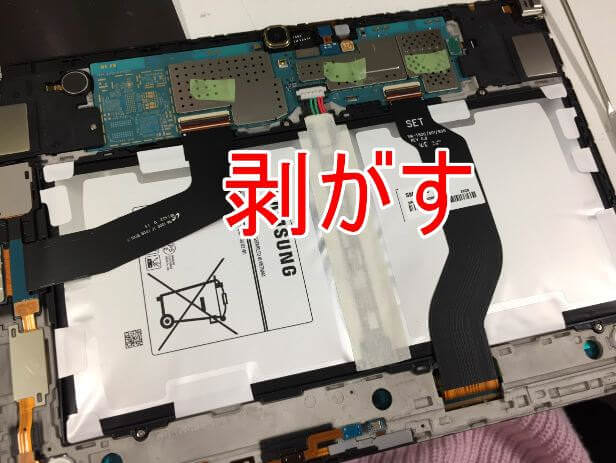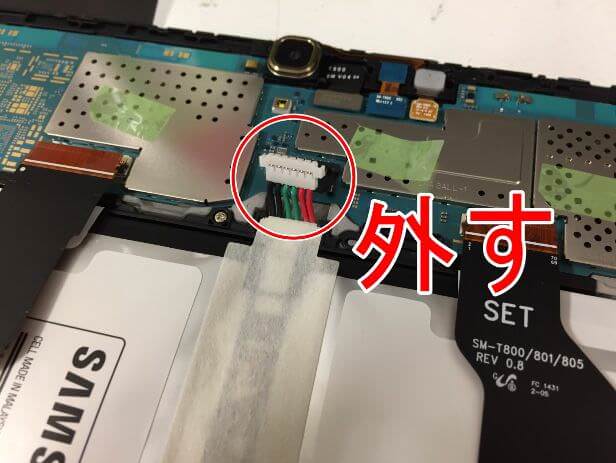 Galaxy Tab S 10.5のバッテリー交換の際に外すべきケーブルは3本です。