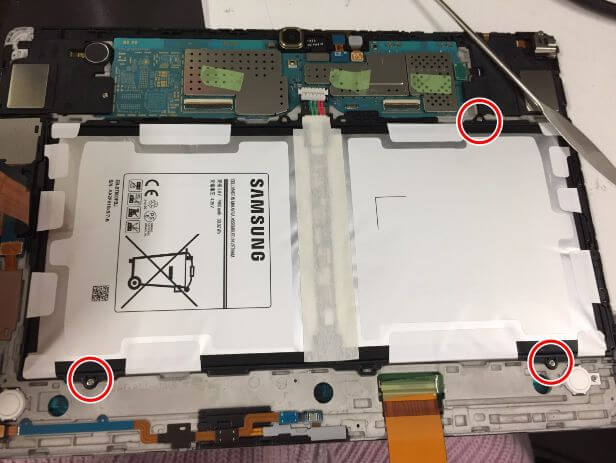Galaxy Tab S 10.5のバッテリーはネジで本体フレームに固定されています。