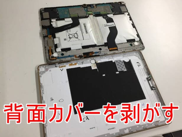 Galaxy Tab S 10.5は背面カバーを剥がして分解する機種です。