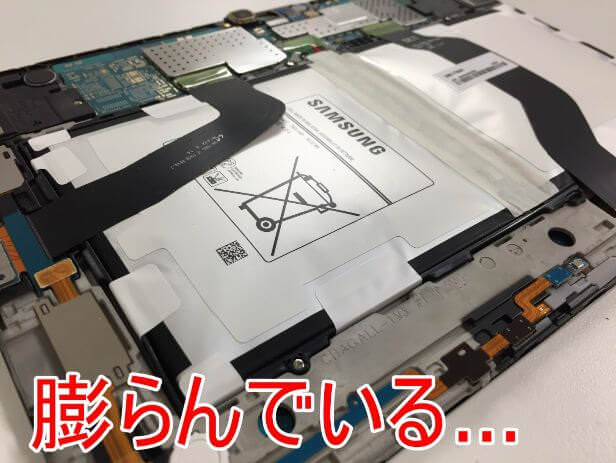 Galaxy Tab S 10.5のバッテリーが劣化により膨張してしまい画面が浮いてきてしまったと交換修理ご依頼を頂きました!