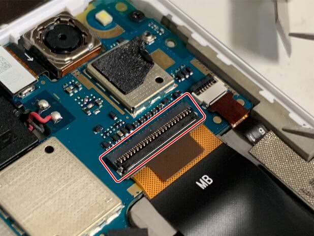 スマホやタブレットによくあるこのタイプのコネクタは、黒いツメを倒すことでケーブルが固定されています。