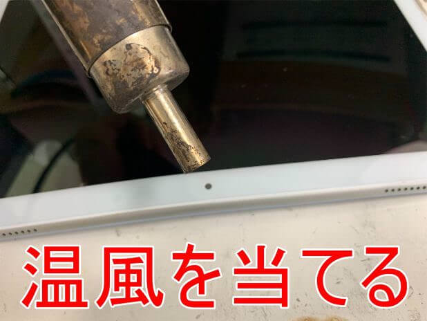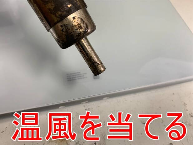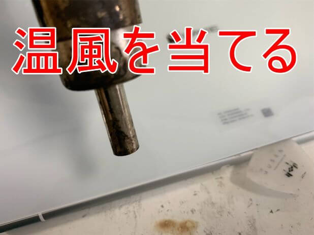 ヒートガンを使って温風を当てます。