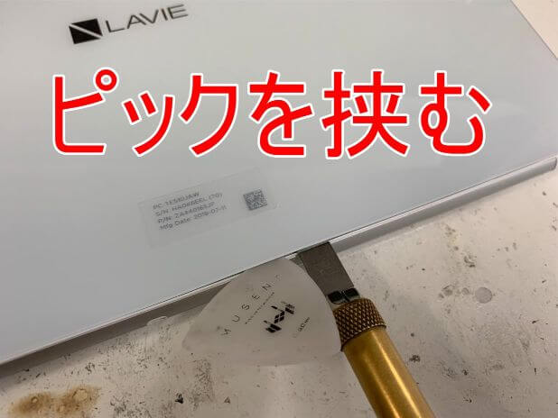 その場所までピックを進める、という作業を繰り返して背面パネル1周分の粘着を剥がします。