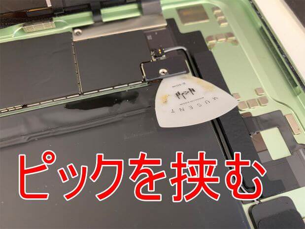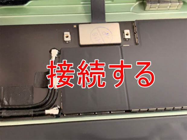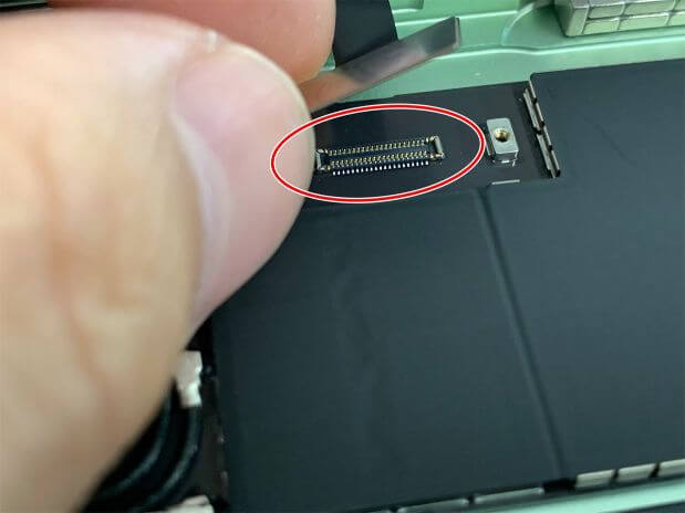 iPad Air 第4世代はバッテリーの接点の上に基板が乗っています。