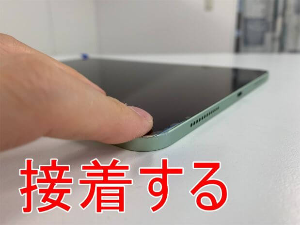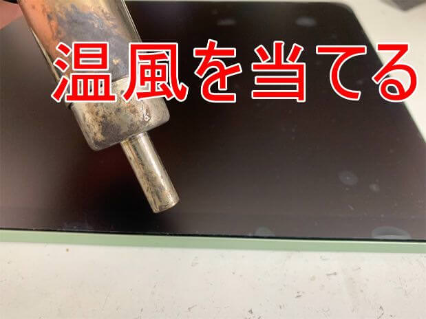 iPad Air 第4世代は所々粘着が強力な箇所があるので、入念に粘着を弱めながら作業を進めます。