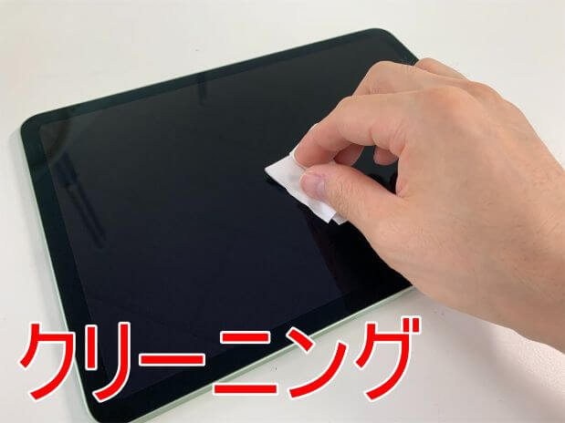 しっかりと画面をクリーニングしたらエアダスターで細かな誇りまで除去します。