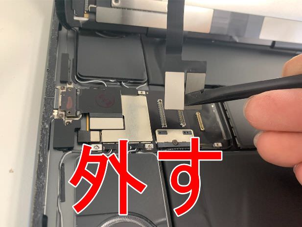 iPadPro 12.9 第3世代の画面パーツは本体下部のプレートで固定されています。