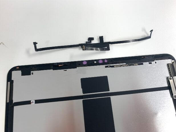 iPadPro 12.9 第3世代の画面パーツには更に上部にFaceIDセンサーケーブルが接着されています。