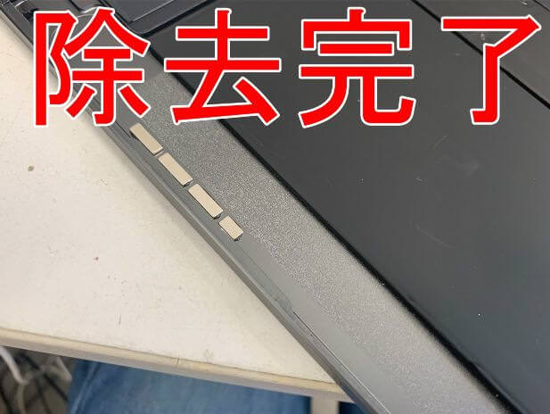 当店ではクラフトナイフを使って粘着テープごと全て綺麗に除去します。