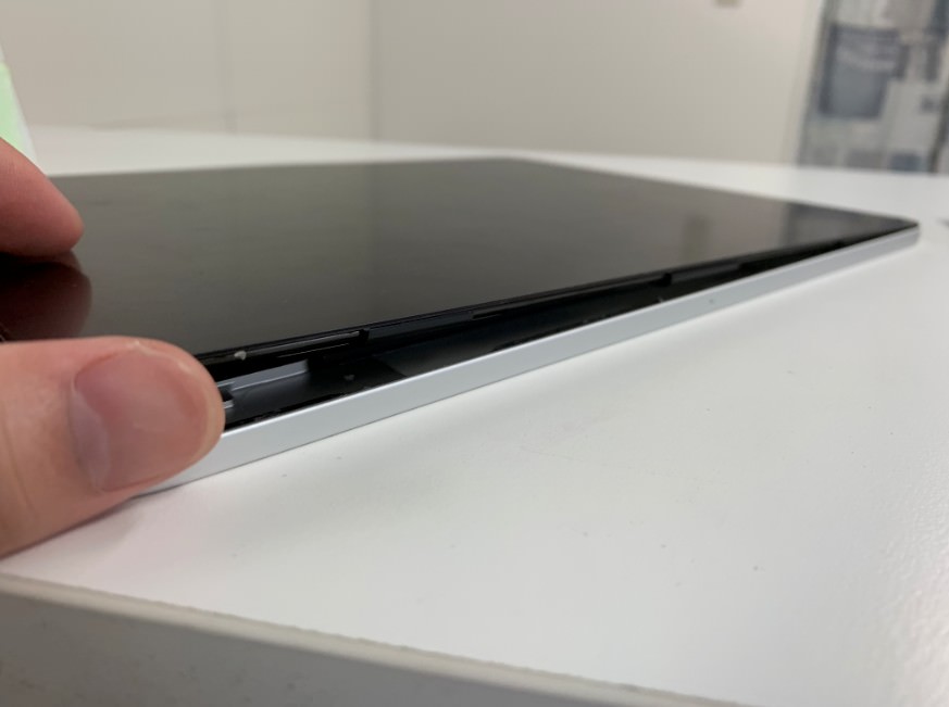 iPad Pro 12.9インチ 第3世代/Pro 11インチの本体フレームが曲がった!への字に変形した症状も矯正作業で真っ直ぐに![町田のiPad即日修理店]