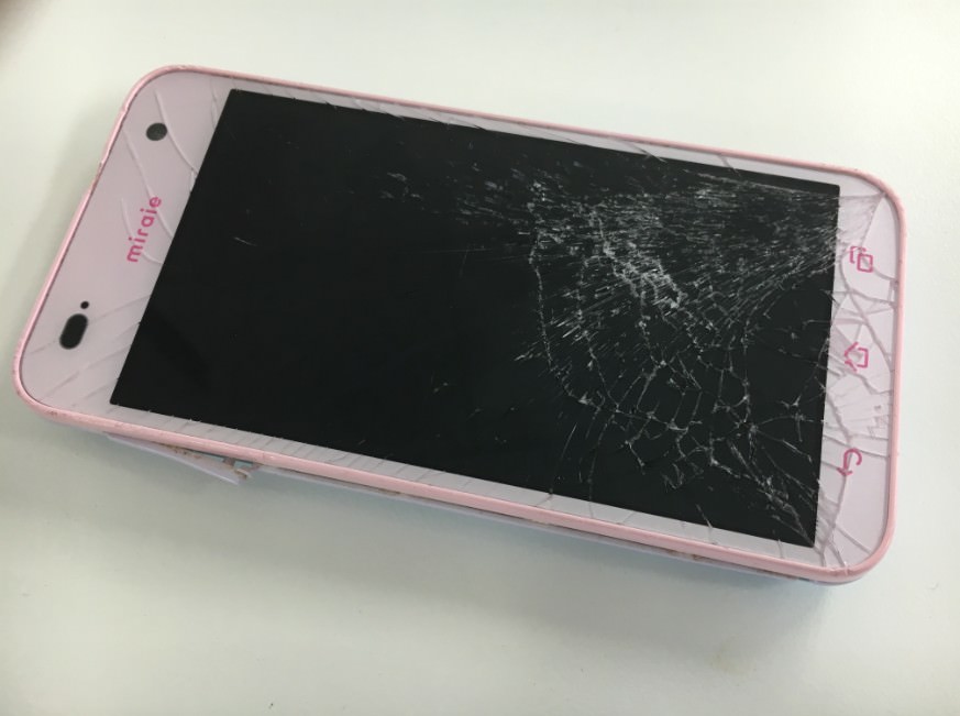 キッズスマホ miraie(KYL23)の表面ガラスがひび割れた!作業時間40分で即日修理完了!