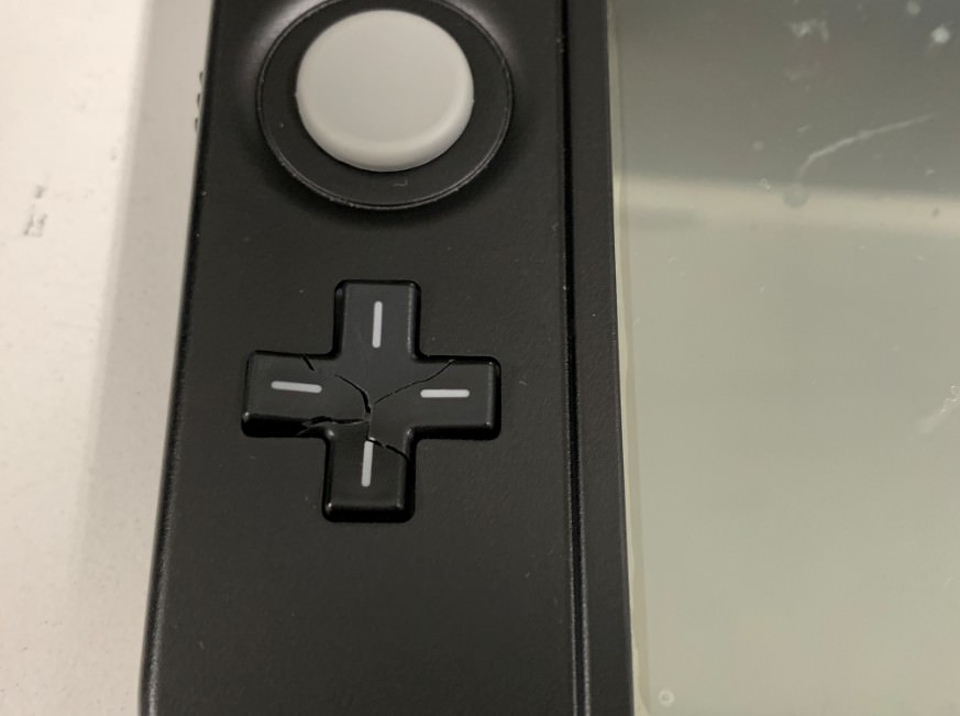 ちょうど十字キーの上に物を落としてしまってこのように割れてしまったそうです。