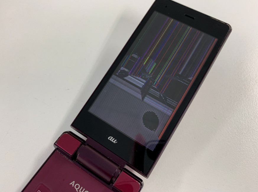 AQUOS K(SHF32)の液晶画面が壊れた!全体が液漏れによって何が表示されているか分からない状態も住所録などデータそのままで修理完了![町田の折り畳み携帯電話修理店]