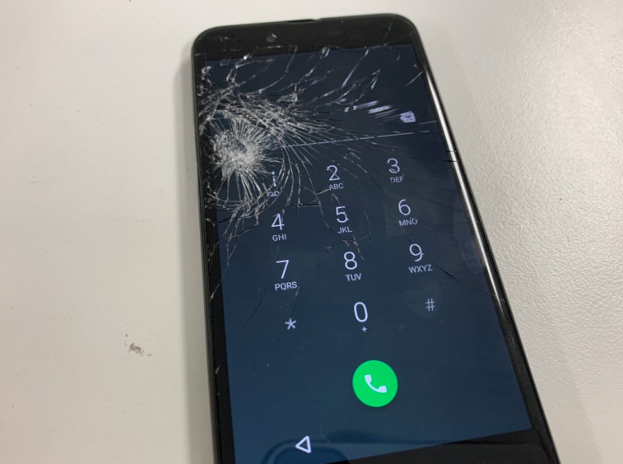 AQUOS sense lite(SH-M05)の表面ガラスが粉々に割れている症状が作業時間40分で元通り![町田のAndroidスマホ即日修理店]