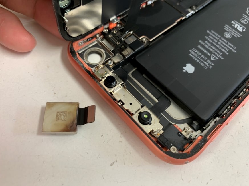 今回は外カメラのレンズが割れてしまっていたのを放置して、外カメラ内にゴミが入って写真・動画撮影時に黒いゴミが入るようになってしまったiPhone XRの修理ご依頼を頂きました!
