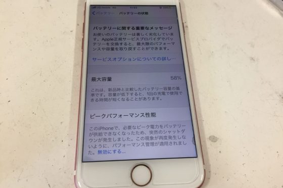 iPhone7のバッテリー最大容量が60%以下で駆動時間が約2時間!スマホスピタル町田なら即日問題解決!