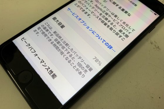 iPhone7Plusのバッテリー最大容量78%まで劣化してすぐ充電切れに!そんな時は修理料金が安いスマホスピタル町田へお任せを!