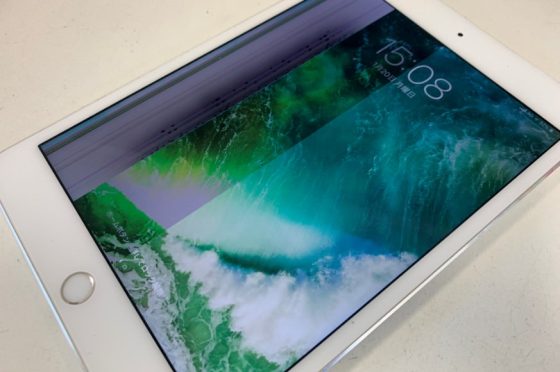 iPad mini第4世代の液晶半分変色して何が表示されているか分からない状態に!所要時間60分で画面交換作業完了し症状改善![町田のアイパッド当日修理店]